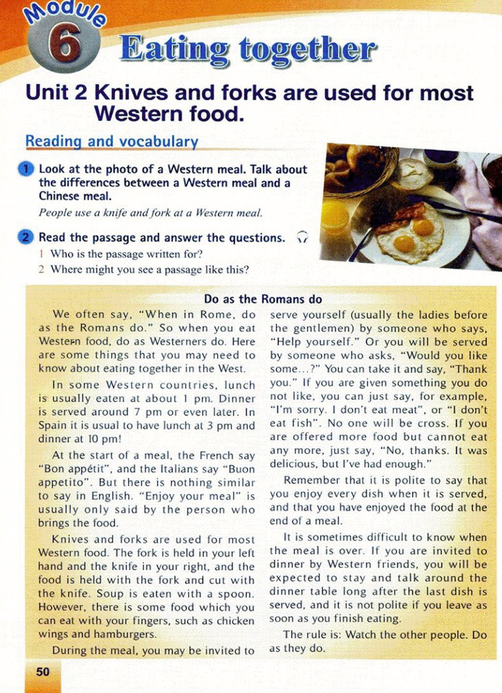 九年级英语下册,Module 6 Eating together
