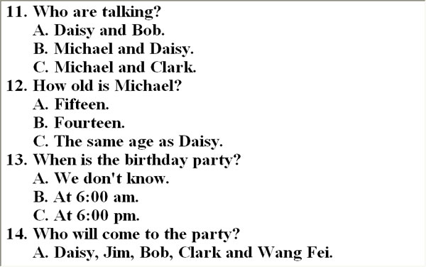 二、听对话和问题,根据所听内容选择最佳答案。