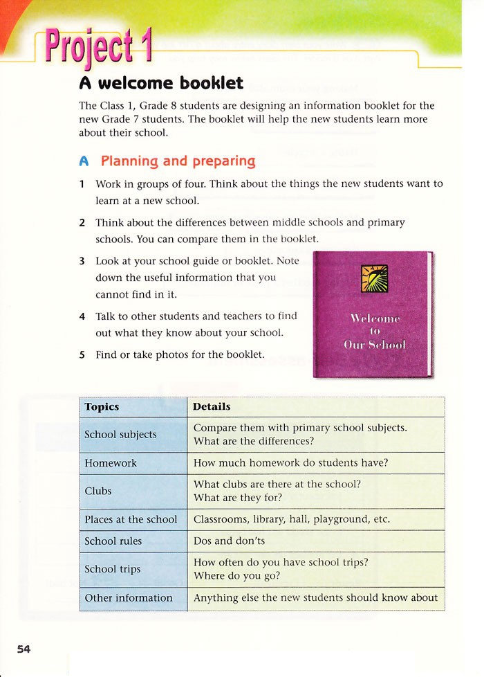 八年级上册英语,Project 1 A welcome booklet