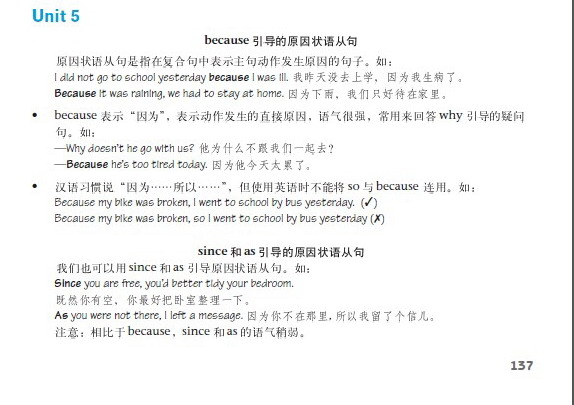 九年级上册英语语法,原因状语从句