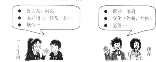 Twenty years ago Sandy and Kitty were in the same class. They studied together, sat on the same bench and became good friends. They had the same hobbies. Of course, they have some trouble. Sandy was very quiet ,but Kitty was outgoing , so when Kitty told some stories, Sandy always didn’t listen carefully.
