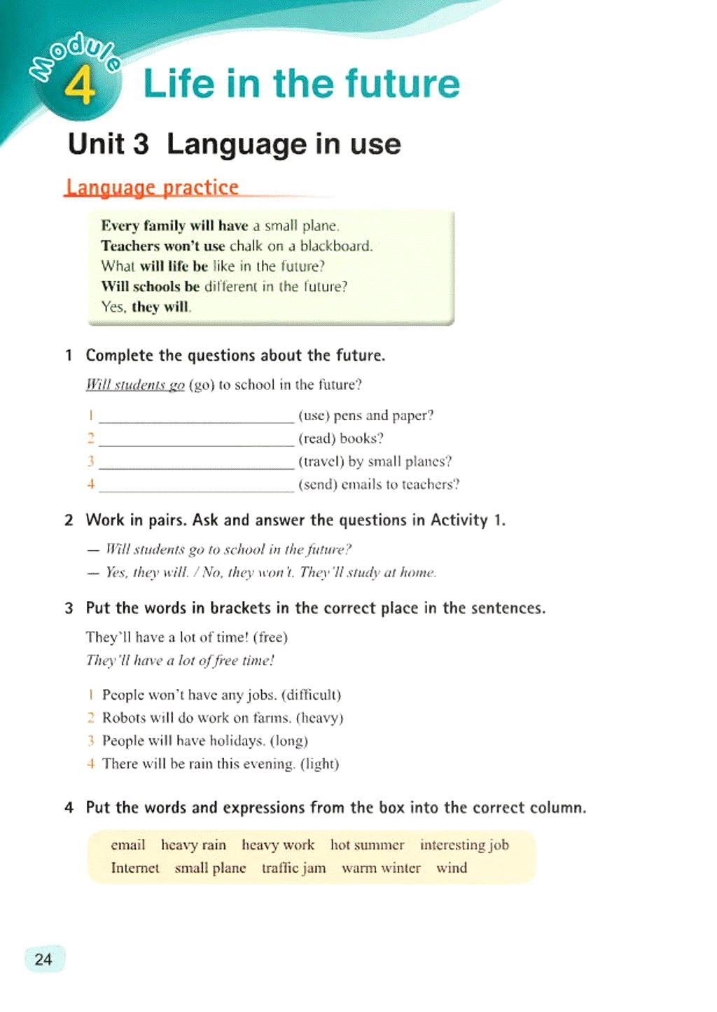 七年级下册英语,Module 4 Life in the future